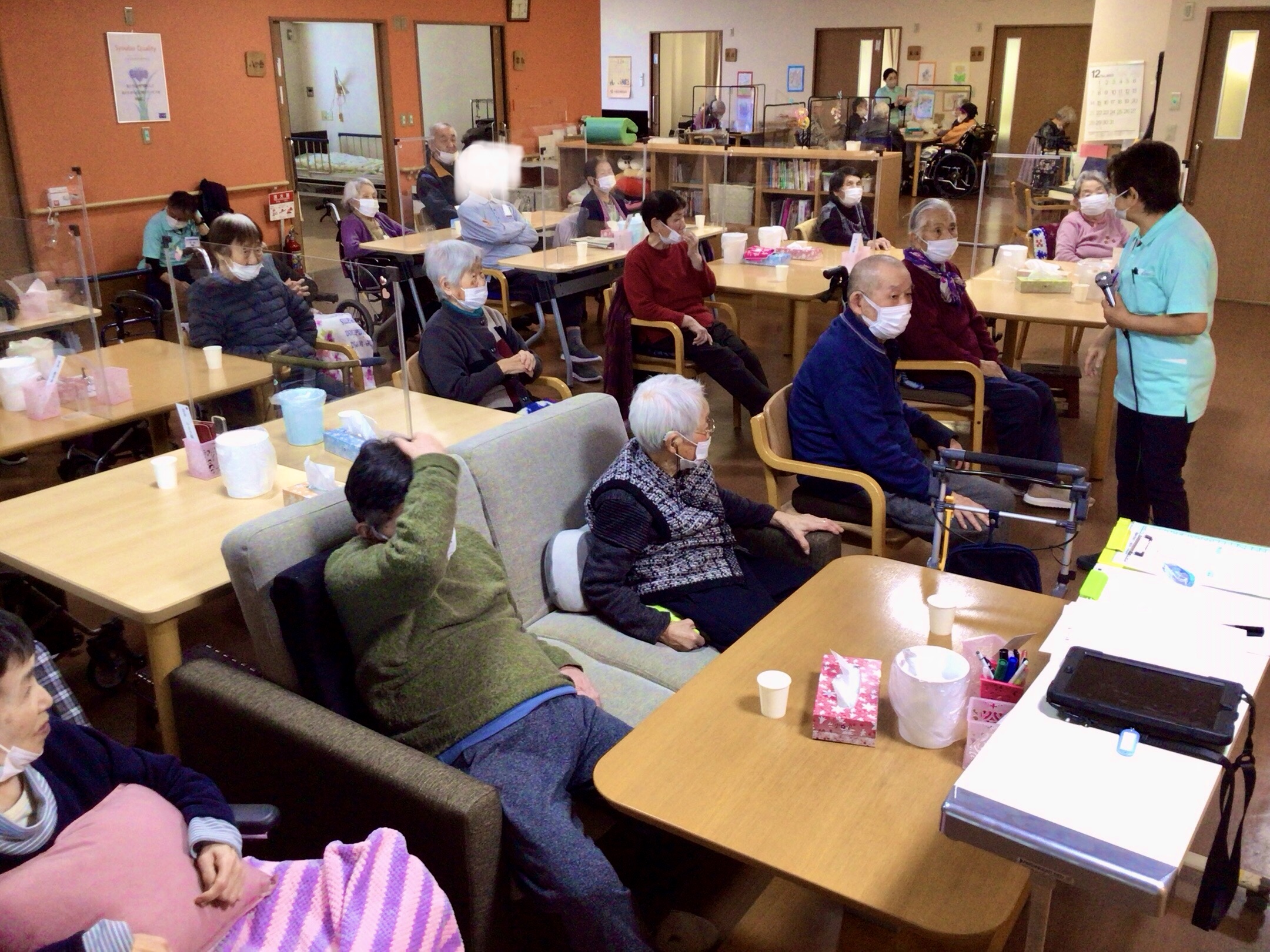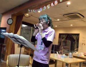 その後は職員による「オカリナ演奏会♪」「カラオケ大会🎤」を行い、演歌や歌謡曲などをみんなで一緒に唄いました♬