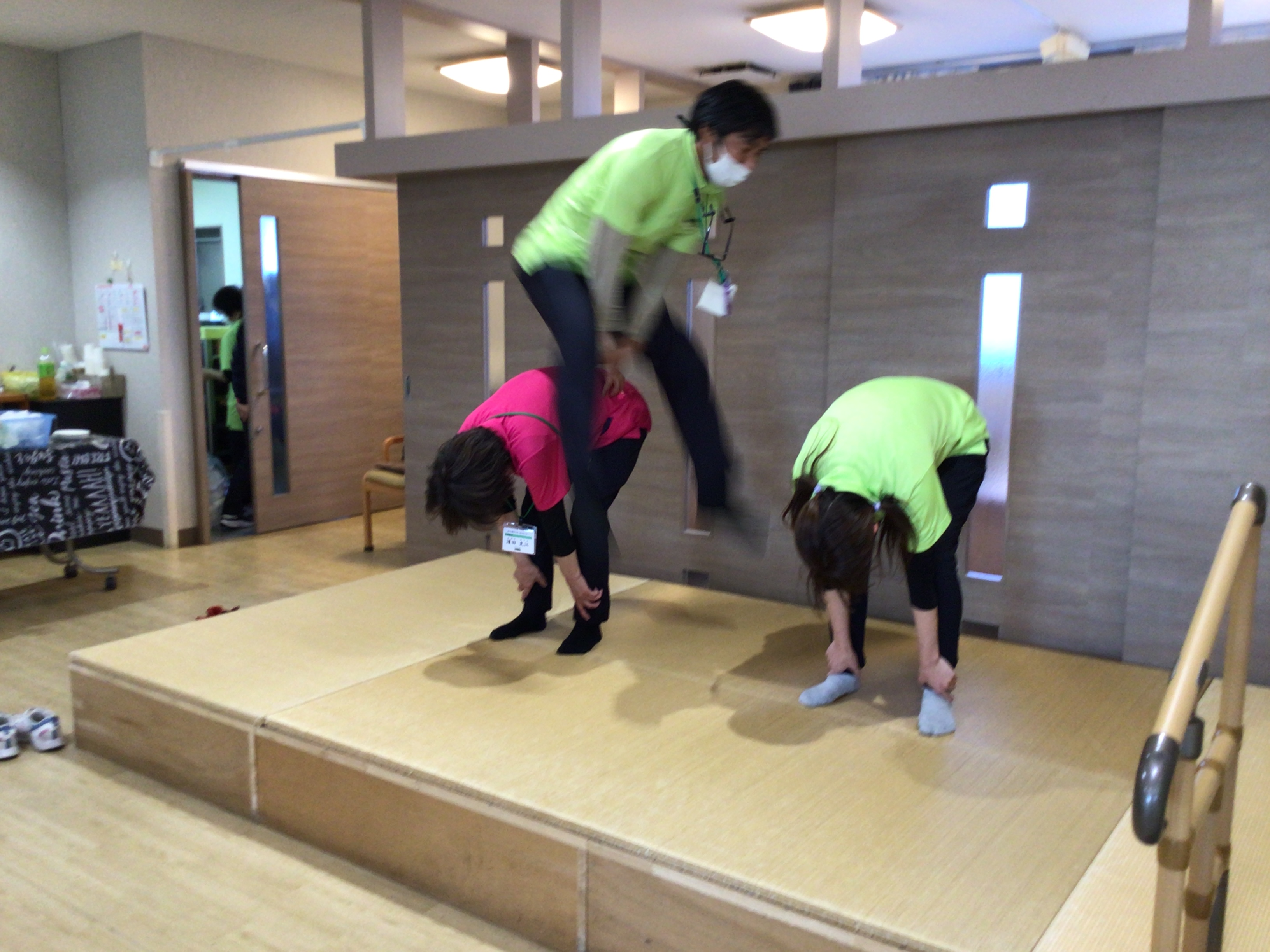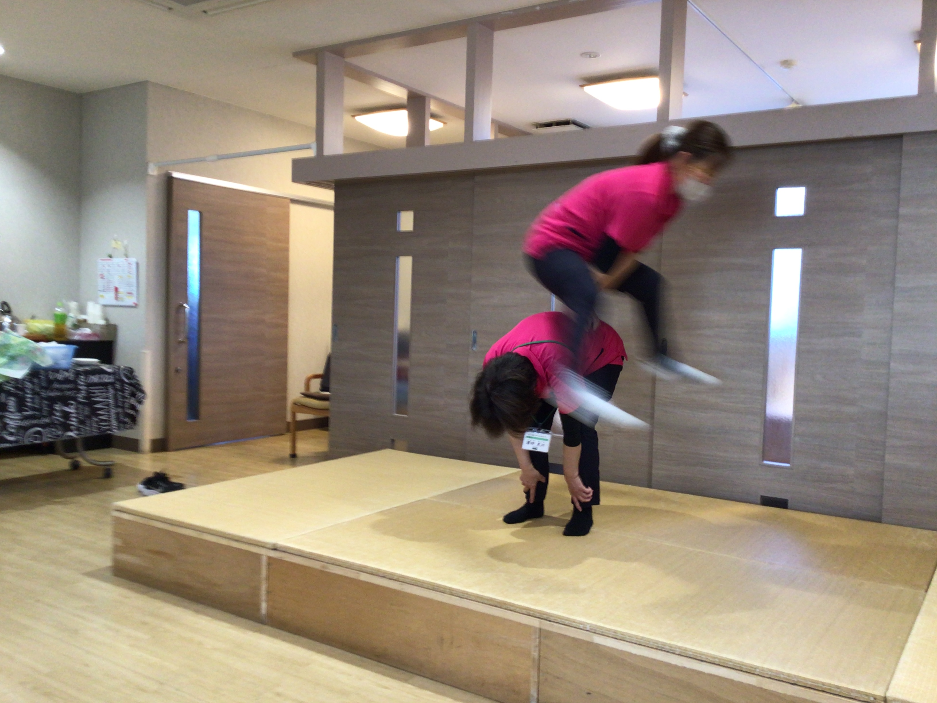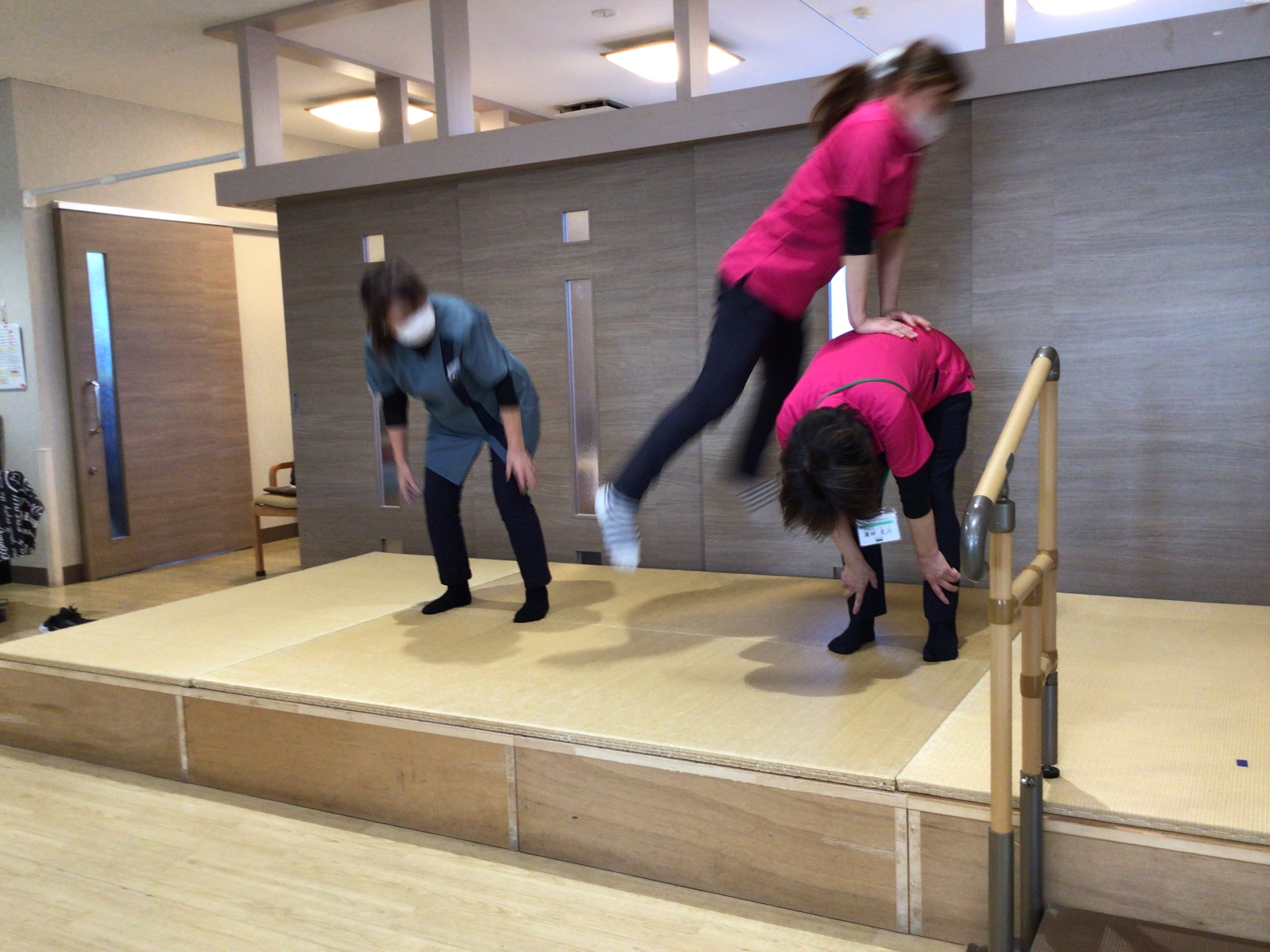 ご利用者様の前で馬飛びを披露しました👏