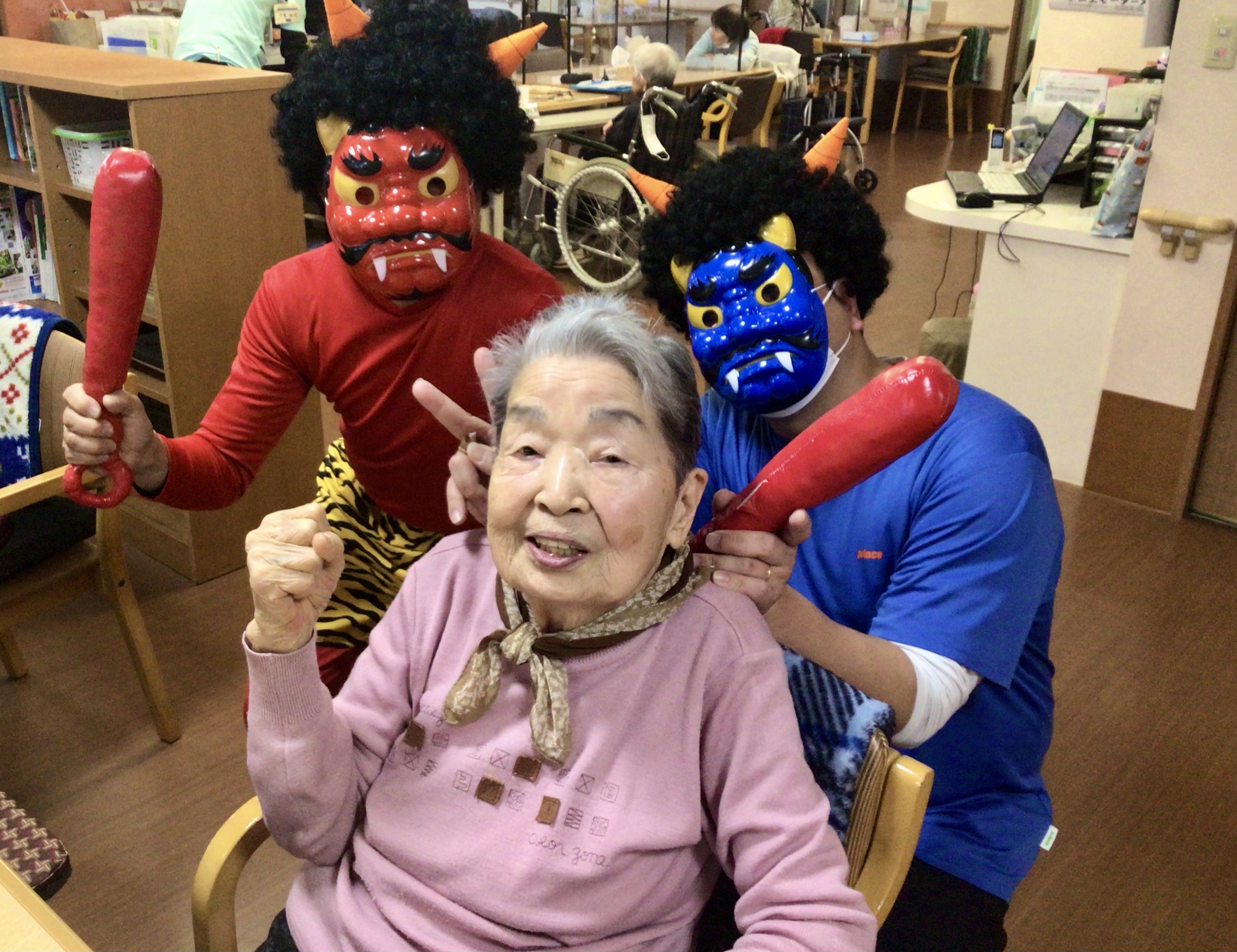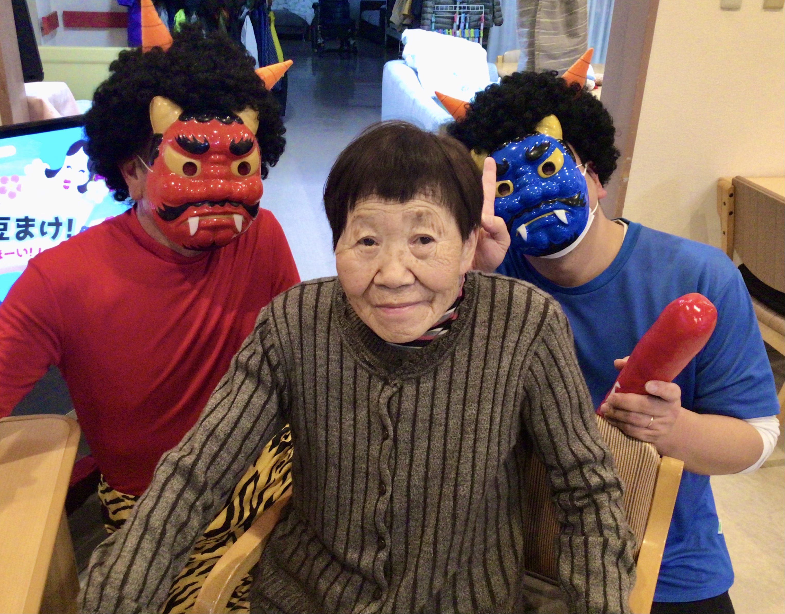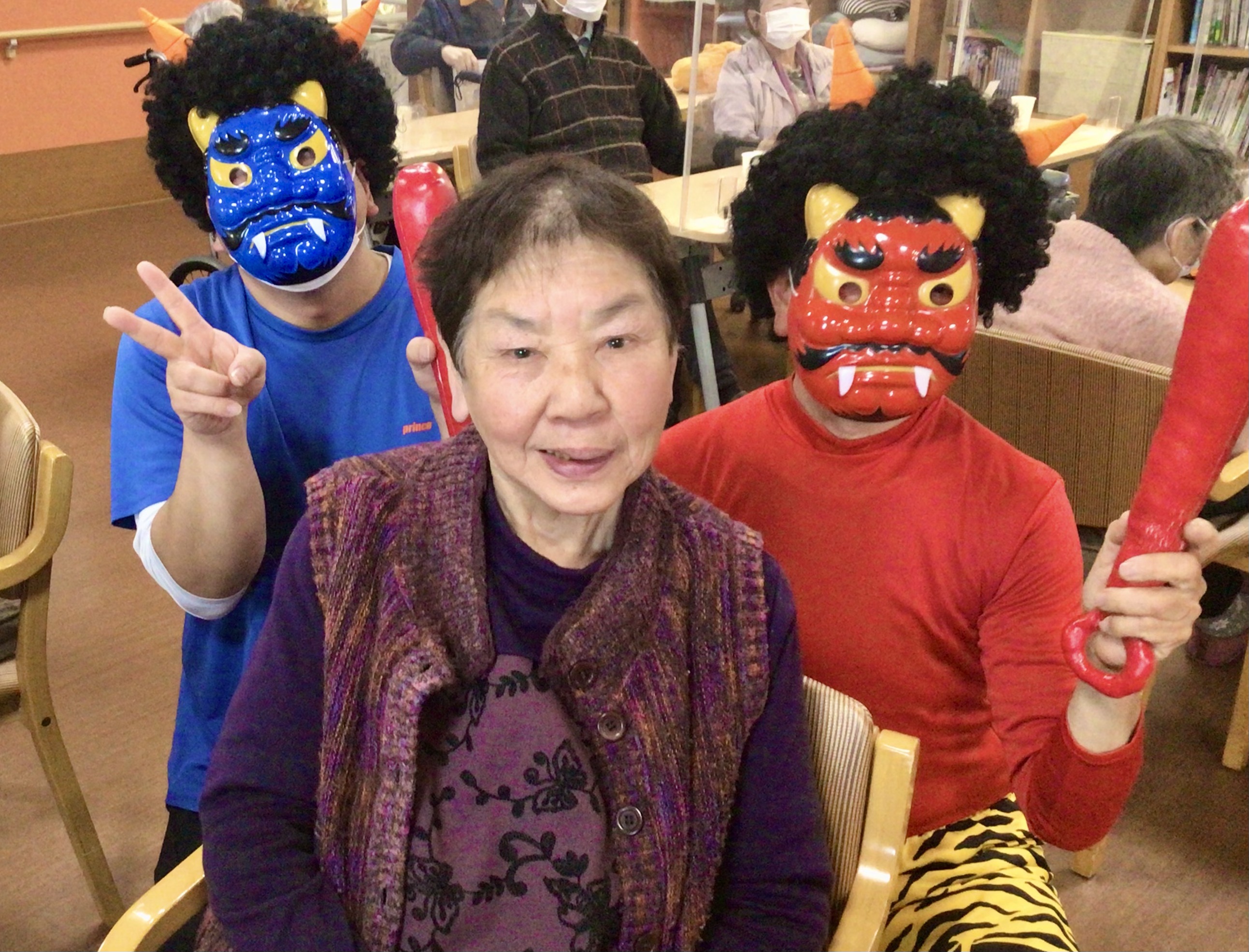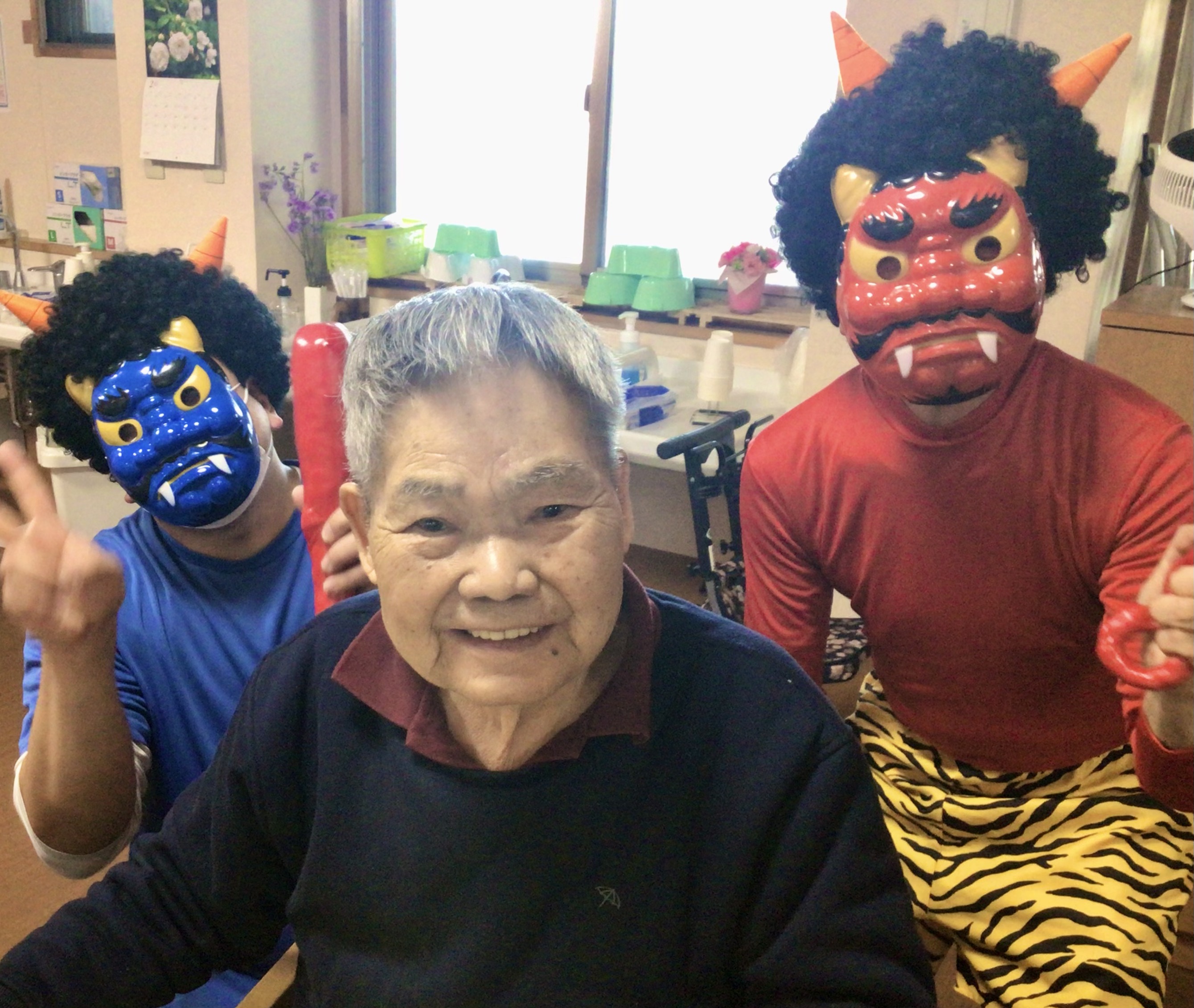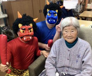 今日は節分ということで、今年もしょうぶの里デイサービスセンターにも鬼がやってきました👹