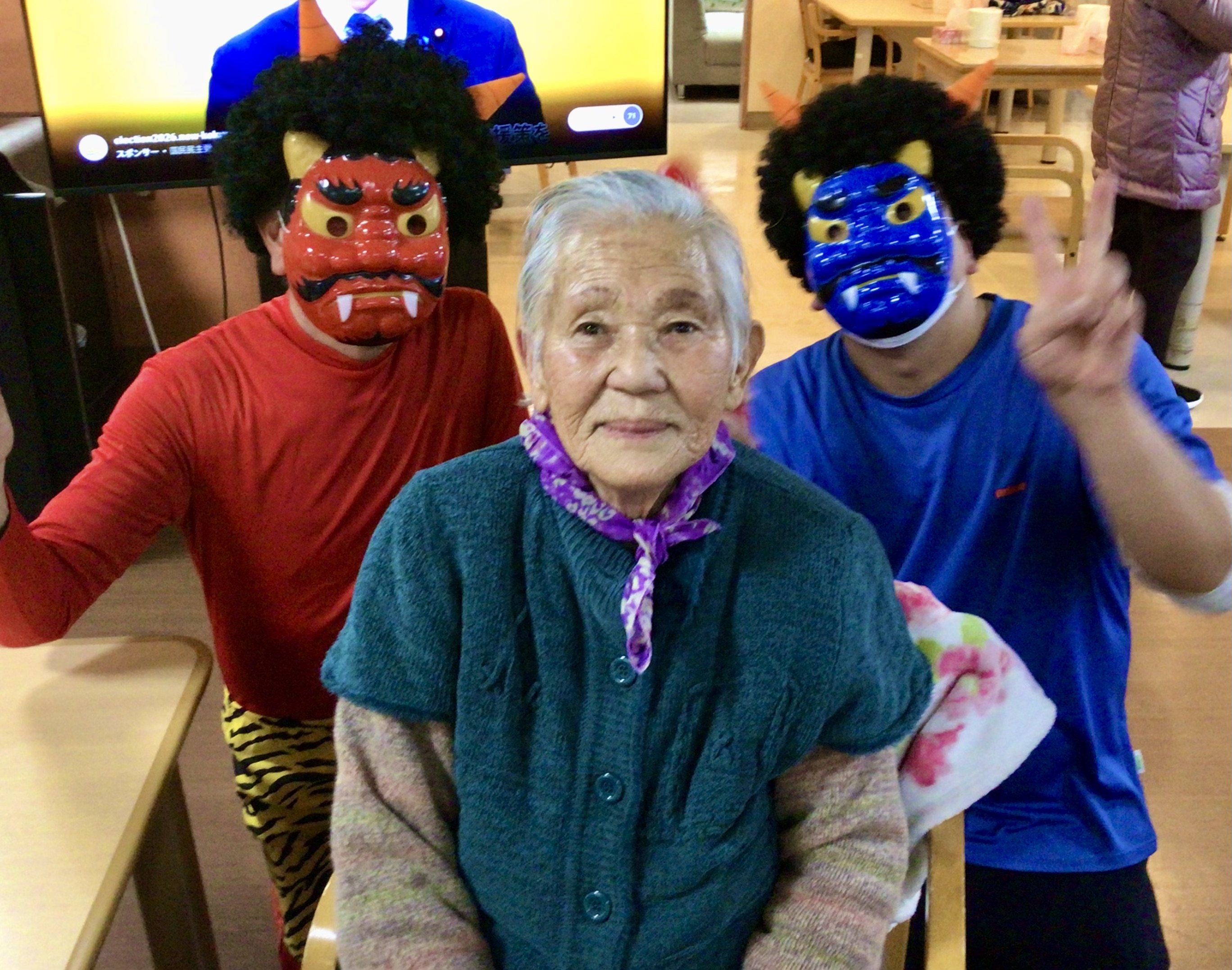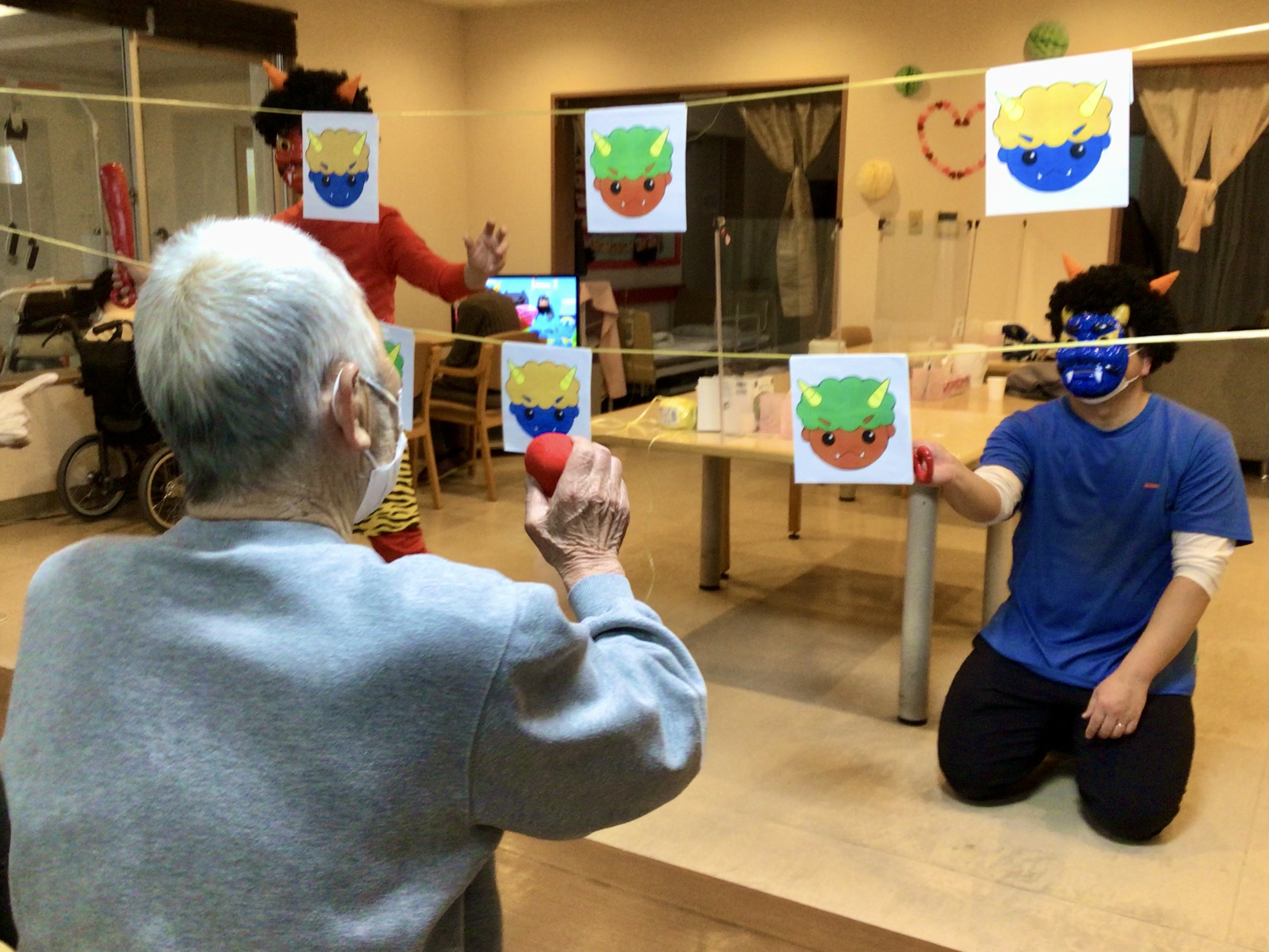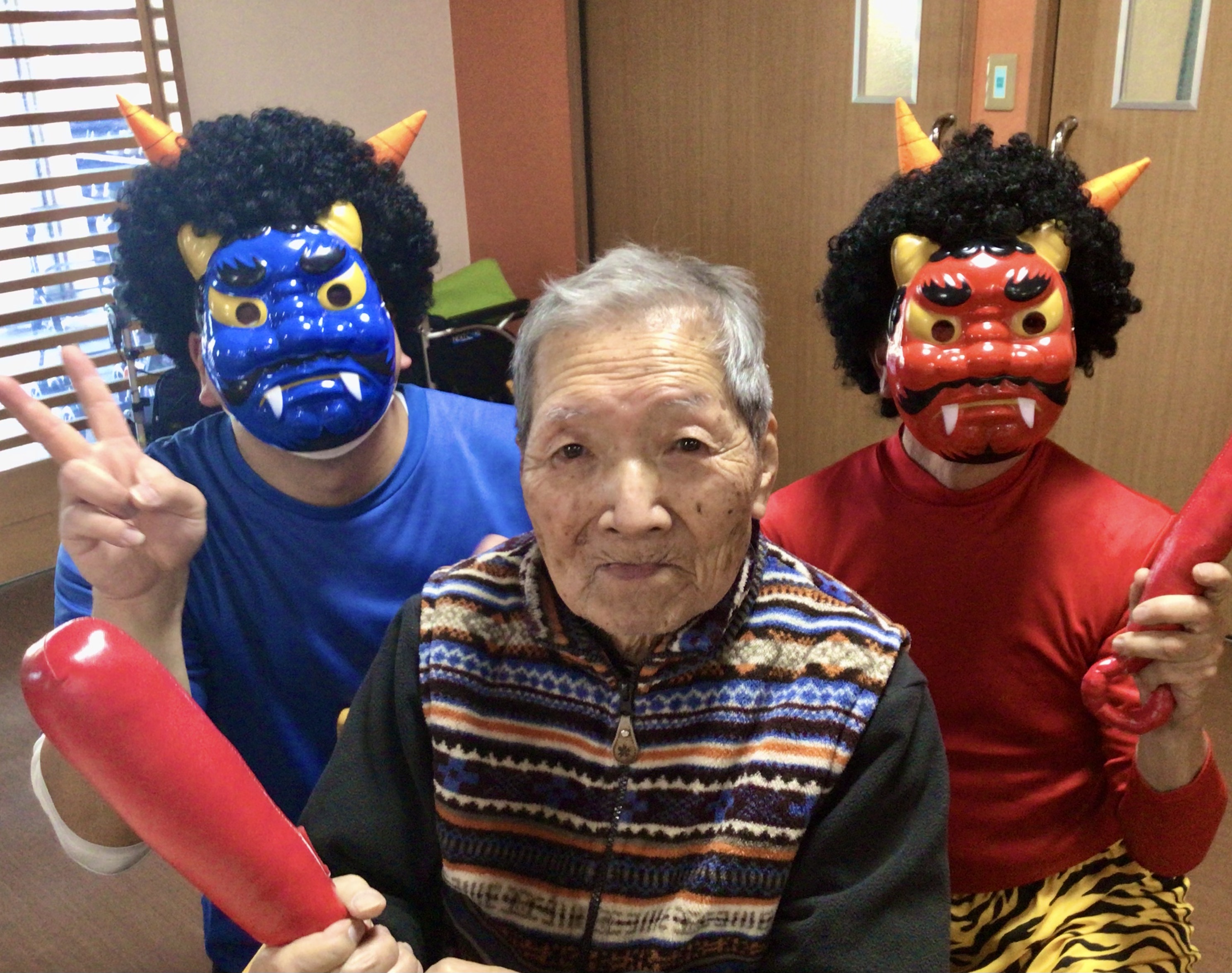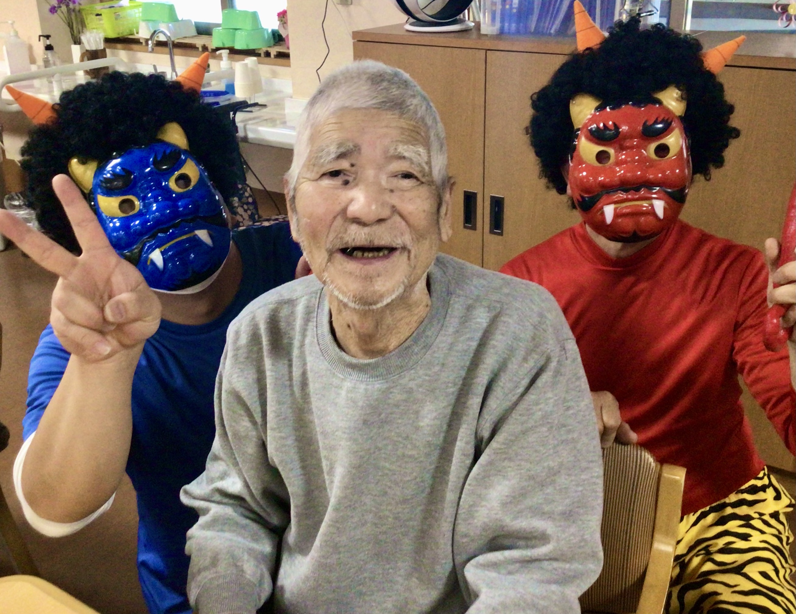 今日は節分ということで、今年もしょうぶの里デイサービスセンターにも鬼がやってきました👹