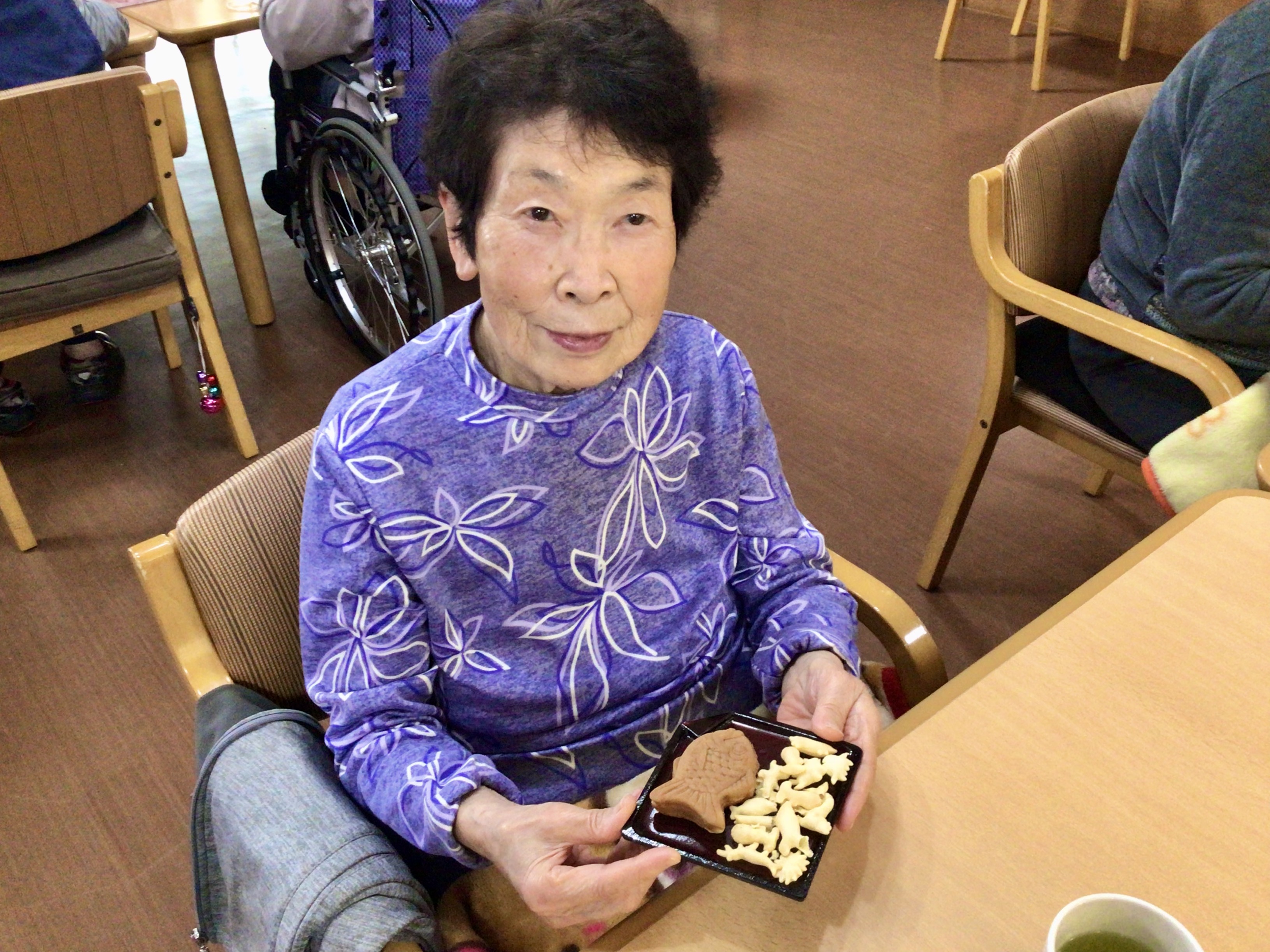 先日水産デーの記念日にあたる13日に海にいる生き物にちなんで「たい焼き」を提供いたしました(^^♪